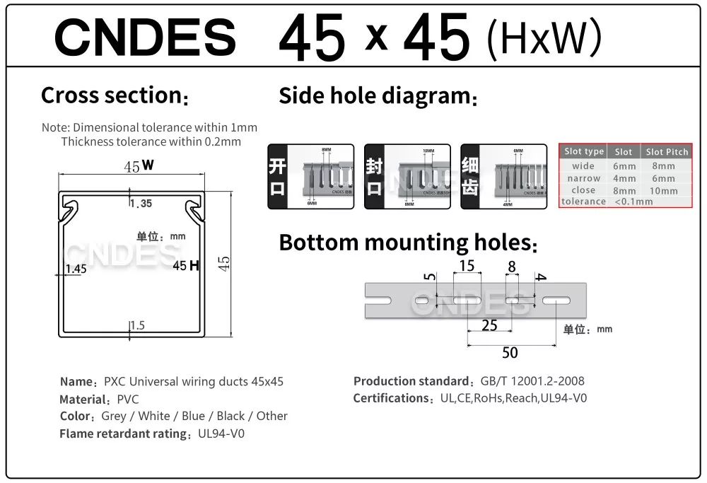 専門メーカーとして、高さ 45mm の CNDES スロット付き PVC ワイヤー カバー ダクトを提供したいと考えています。 45*25、45*33、45*45を含む。